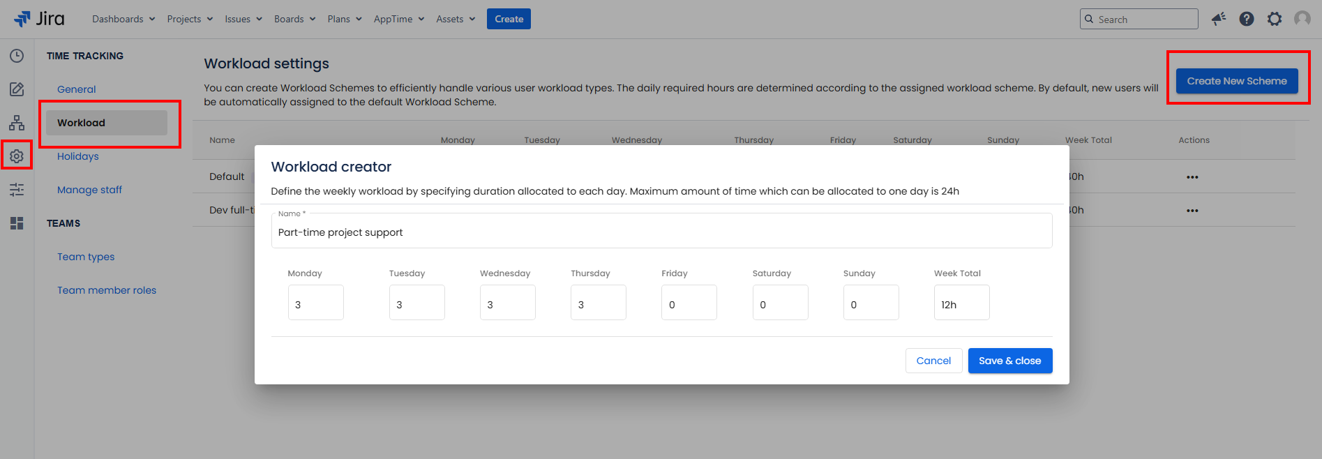 Workload scheme is a set of expected working hours. Such schemes are assigned to the users so that daily working hours are always accurately defined.